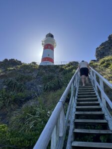Danach ging’s weiter zum Pencarrow Upper Lighthouse. Bis ganz nach oben waren es exakt 256 Treppenstufen – gezählt, versteht sich. 😅🥾🗼