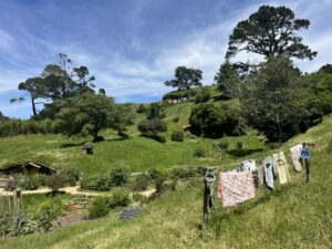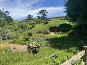 Dann gings los. Schon auf der Hinfahrt liefen die klassischen Herr der Ringe– und Hobbit-Soundtracks und es gab erste spannende Fakten zu den Filmen und den Kulissen. Angekommen in Hobbiton standen wir direkt mitten im Geschehen: Die ersten Hobbit-Häuschen tauchten zwischen den grünen Hügeln auf – und es sah wirklich genauso magisch aus wie im Film. 🧙♂️🌿