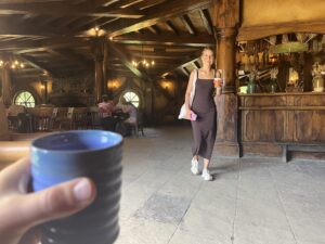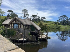 Weiter gings zu Bilbos Hütte, zum Ort des berühmten 111. Geburtstags Bilbos, vorbei an Sams Hütte und meinem persönlichen Highlight: Wir durften sogar in eine der Hütten hineingehen. So cool! Am Ende der Tour kamen wir noch an der Mühle und dem Green Dragon Inn vorbei, bei welchem wir uns ein Getränk aussuchen durften. Mone hat sich Ginger Beer geholt und ich einen Apple Cider – das Ginger Beer war definitiv besser.🏡✨