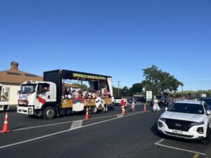 Auf dem Weg entdeckten wir im Ort Otorohanga einen kleinen Christmas-Umzug – vollkommen unerwartet und irgendwie richtig toll. Also: nächste Parkmöglichkeit, Handbremse – Check – und raus aus dem Camper, das lassen wir uns doch nicht entgehen. 🎄🚐✨