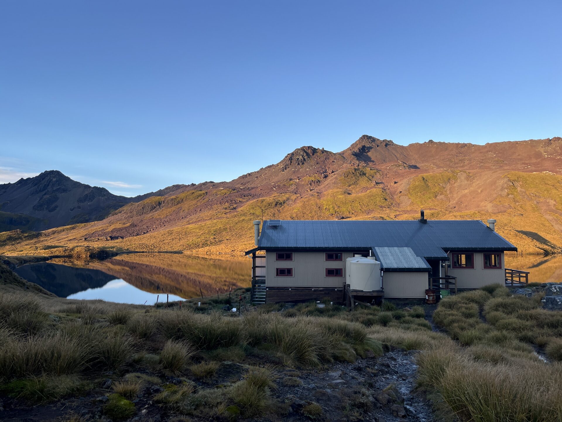 Nach gerade einmal 3,5 Stunden Schlaf klingelte der innere Wecker – der Sonnenaufgang war bereits durch die Hüttenfenster zu sehen. An richtiges Ausschlafen war nicht zu denken: Die stickige, trockene Luft im Schlafraum mit sieben weiteren Personen hatte starkes Hostel-Feeling, nur eben mitten in der Natur. Ich konnte mich trotzdem gut erholen und war klar im Kopf, Mone hingegen fühlte sich noch deutlich müde. 🌅😴