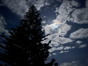 In der Nacht kamen dann allerdings die wahren Herrscher des Campingplatzes: die Mücken. Ich wurde komplett zerstochen. Insgesamt waren es fünf Stück – und als ich sie erwischte, waren sie voll mit unserem Blut. Lecker. Als ich mich von den Dingern draußen abregen musste, hatte es eines gut – dieses wunderschöne Mondbild. 🌝🦟