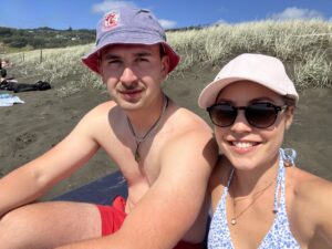 Der Strand dort war wirklich beeindruckend – überall Surfer, wohin man blickte. Die Wellen waren perfekt, das Licht schön und der Sand: rabenschwarz. Und ja… wir haben die Sonne mal wieder unterschätzt. Leichter Sonnenbrand? Check. 🏄♂️🌊