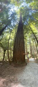 Anschließend machten wir uns auf den Weg in den Redwood Forest. Dort konnte man kurze Wandertracks durch den Wald laufen oder über die Baumwipfelbrücken gehen. Wir entschieden uns für die kostenlose Boden-Variante und liefen gemütlich zwischen den riesigen Bäumen hindurch. 🌲🥾