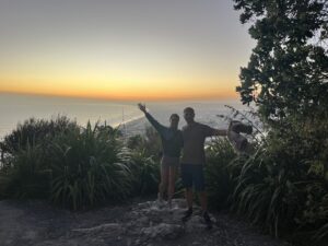Klingeling 03:30 klingelte der Wecker. Für mich um 04:00. Aufgestanden, angezogen und ab die Post. 04:30 war Abfahrt, die Fahrt zum Mt Manganui / Mauo dauerte 30 Minuten. Um 05:10 war der Beginn des Sonnenaufgangs und um 5:47 schließlich der vollständige Sonnenaufgang. Unten geparkt, uff 200 Höhenmeter auf 2 Kilometer – da ging’s dann aufwärts. Kein Mensch, nur wir mit unserem Porridge in der Hand. Auf einmal so viele Menschen – das ist wohl ein sportliches Städtchen. Ganz schön was los um die Uhrzeit! 🌅⛰️🏃♀️🏃♂️