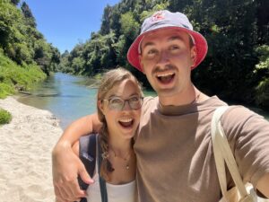 Weiter ging’s zur Trüffelfarm Trufflewood (trufflewoodtruffles.co.nz). Einfahrt verpasst, Vollbremsung, zurück. Ein Mann kam heraus – super freundlich – und lud uns direkt ein, obwohl keine Tour mehr frei war. In der Zwischenzeit zeigte er uns seine 8 Hektar große Farm und seine Hunde Wandy & Simba (nur einer ist ein echter Trüffelprofi). Er erzählte uns kurz, wie aufwendig Trüffel wächst: erst nach etwa 10 Jahren intensiver Pflege entstehen sie an den Wurzeln von Haselnuss- oder Eichenbäumen. 🐕🌳🍄