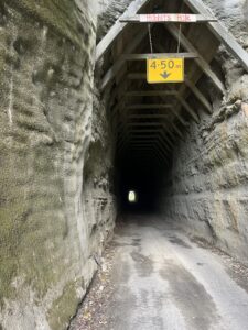 Unterwegs ging es durch den Makahu Tunnel, einen einspurigen, unbeleuchteten Tunnel aus dem Jahr 1936. Er ist rund 180 Meter lang, extrem schmal und leicht gebogen, sodass man das Ende kaum sieht. Ein echtes Nadelöhr – Gegenverkehr? Hoffentlich nicht. Langsam reinrollen, Luft anhalten und durch. 😅🕳️