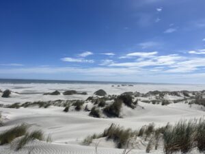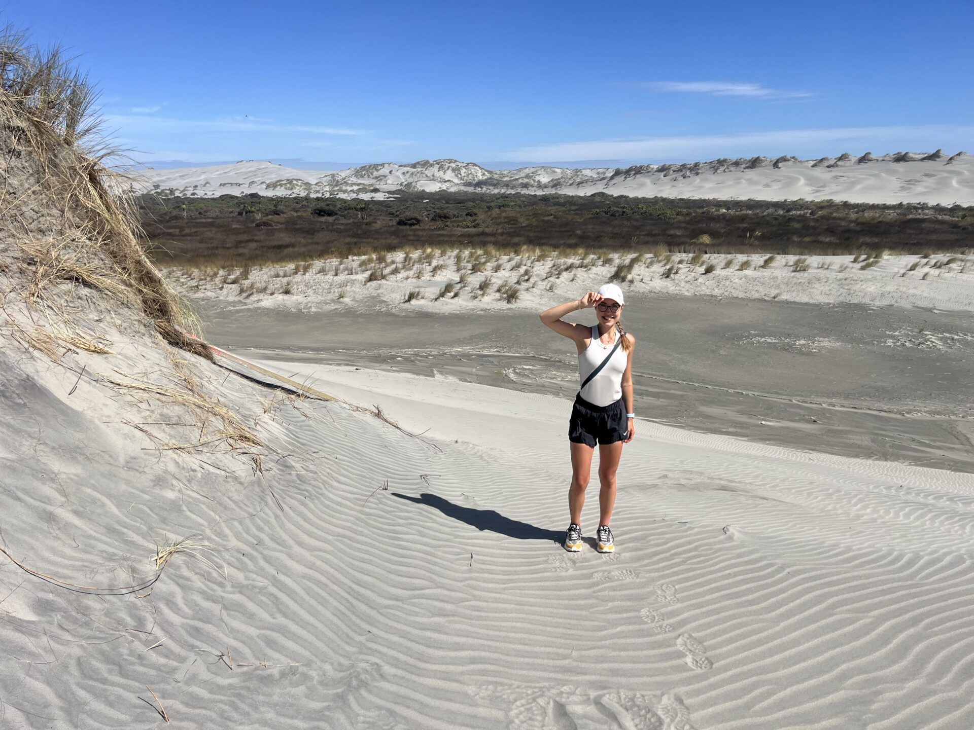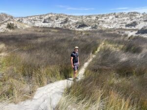 Wir starteten mit einem 11-Kilometer-Walk entlang der Küste, dem Walkway Te Papa Atawhai. Anfangs war der Weg noch unspektakulär, doch später wurde er richtig beeindruckend. Die Dünen tauchten vor uns auf – erst noch bei leichtem Wind und etwas geschützt, später blies uns der Wind an der Westseite den Sand direkt ins mit Sonnencreme bedeckte Gesicht. Insgesamt waren wir rund 2,5 Stunden unterwegs und es war ein wirklich schöner, abwechslungsreicher Spaziergang. 😅🌬️