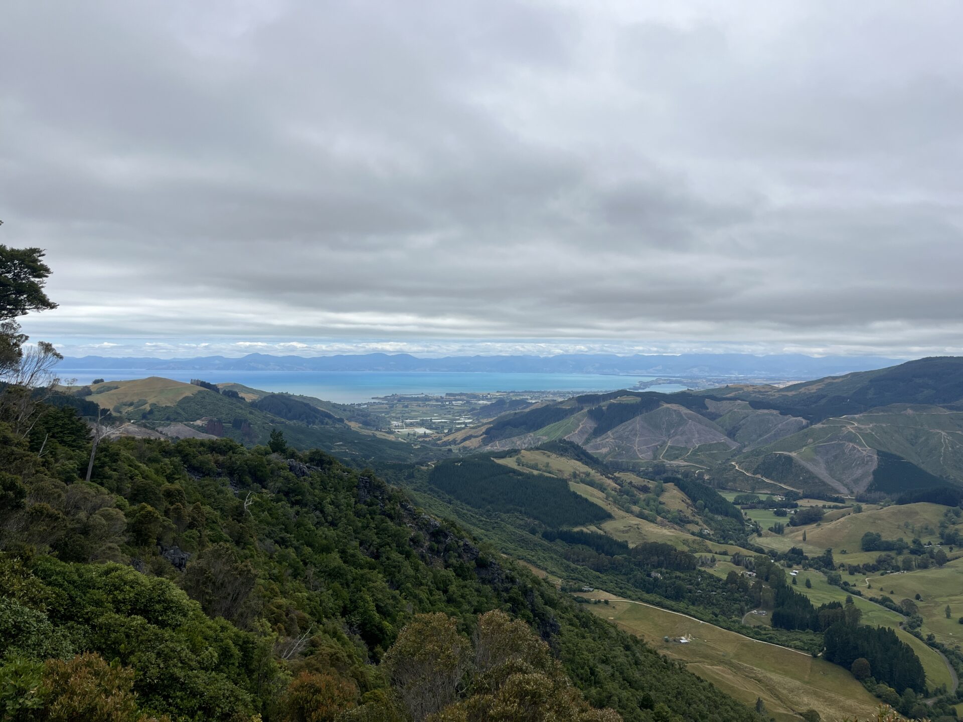 Am Nachmittag machten wir uns schließlich auf den Weg in Richtung Abel-Tasman-Nationalpark. Der erste freie Campingplatz: komplett belegt. Na gut, weiterfahren. Und dann – Glück gehabt – den allerletzten freien Platz ergattert, ganz oben am Hawkes Lookout Viewpoint. 🏕️🌄